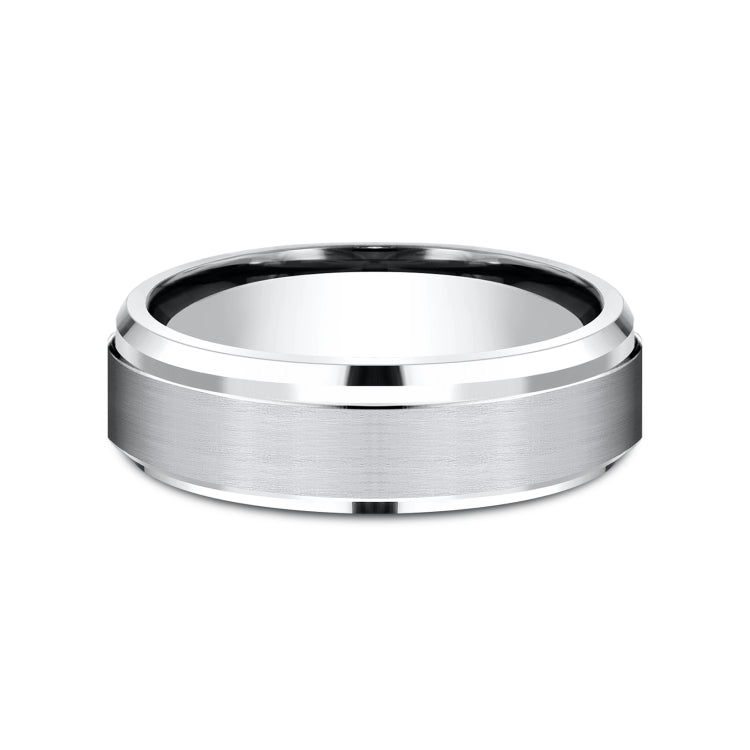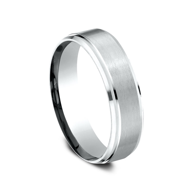 6mm, Comfort fit White Cobalt Satin center, polished bevel edges
