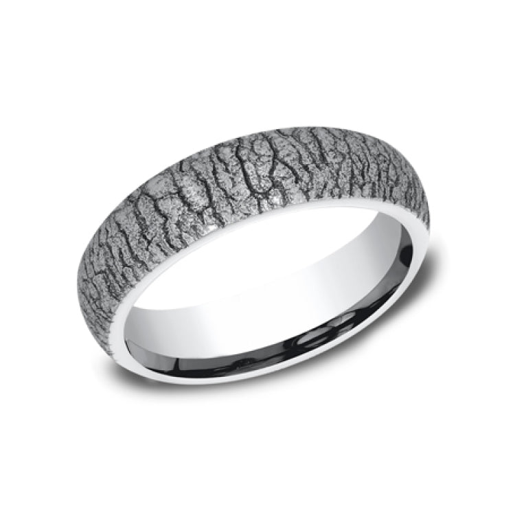 6mm, Comfort fit White Cobalt Tree bark patterned center