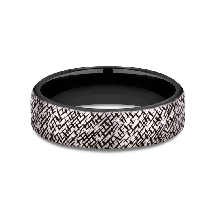 6.5mm, Comfort fit Grey/Black Titanium Cross hatch pattern