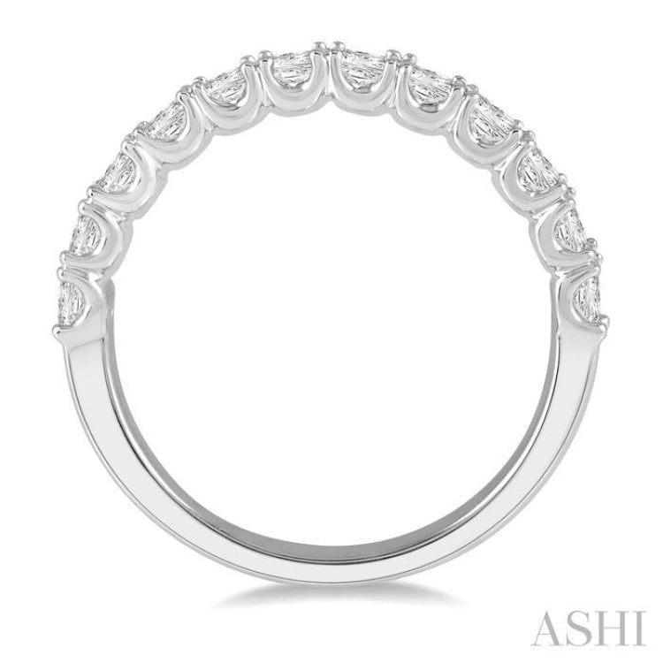 Make her fall in love with the everlasting appeal of the sparkling Diamond Matching Wedding Band. Brilliant 12 princess cut diamonds add sparkle to the elegant band glistens with luminous 14 karat white gold. Diamonds are perfectly prong set. Total diamond weight is 1 1/5 Ctw.