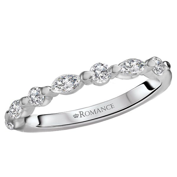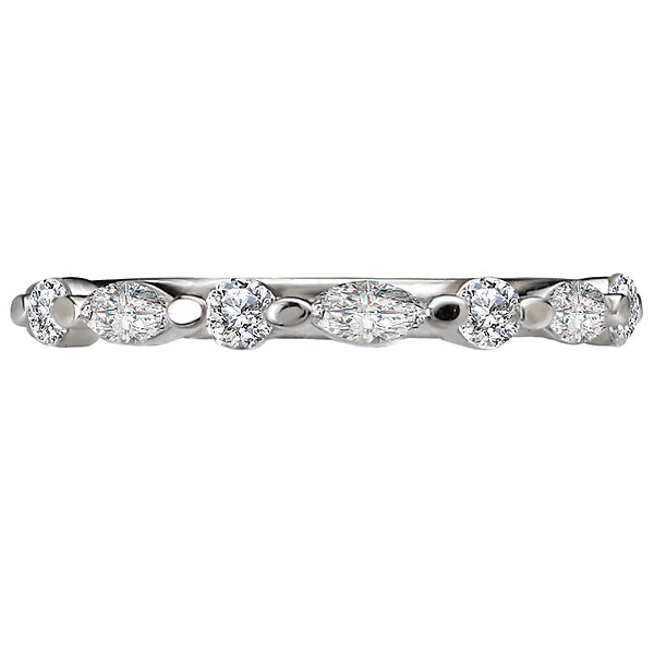 This matching wedding band has beautiful marquise and round diamonds set in polished 14kt white gold. (D 1/3 carat total weight)