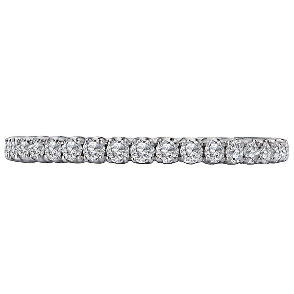 This is a 14kt white gold sparkling micro set diamond lined straight band. (D 1/4 carat total weight)