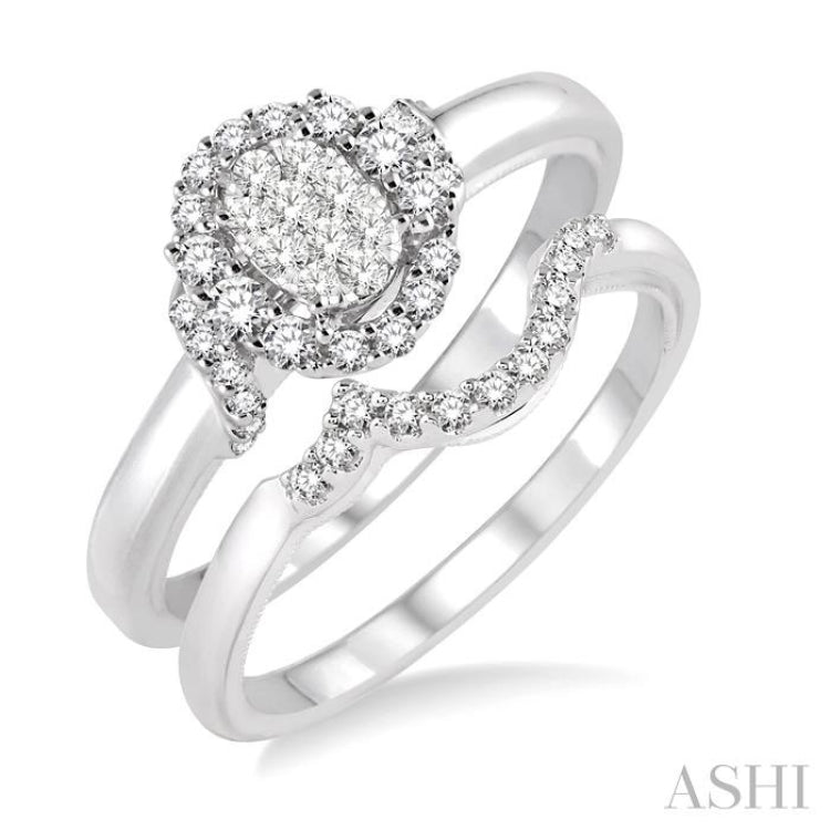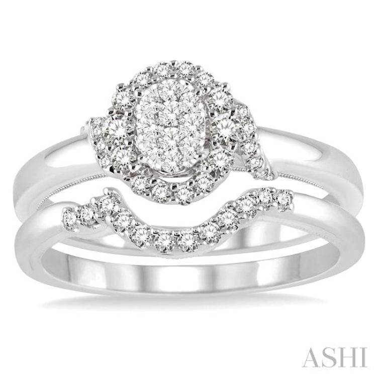 3/8 Ctw Diamond Lovebright Wedding Set with 1/3 Ctw Engagement Ring and 1/10 Ctw Wedding Band in 14K White Gold