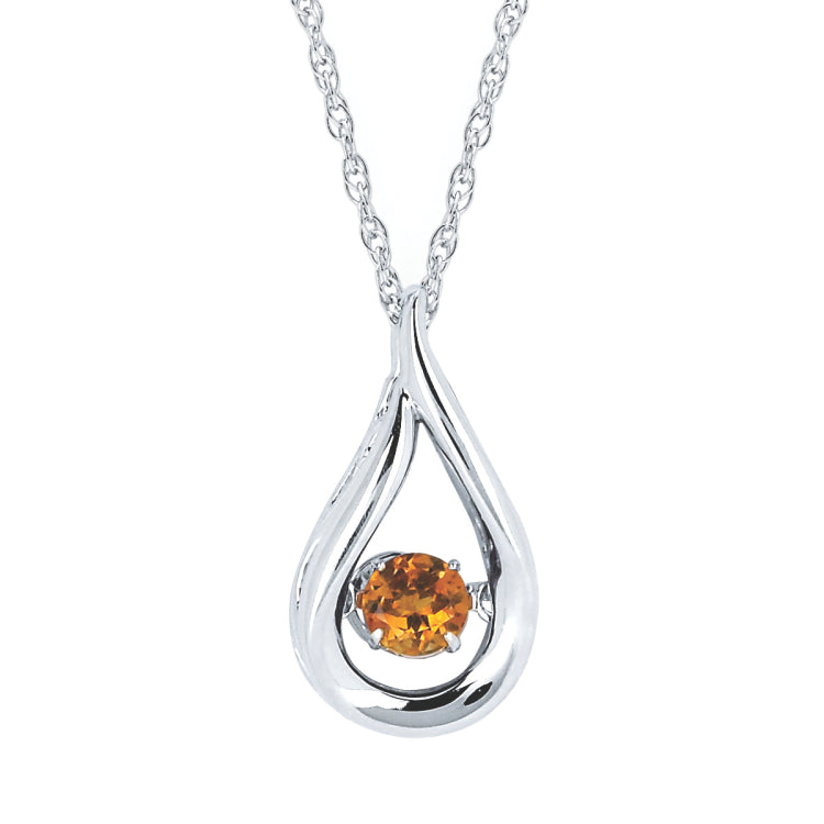 Shimmering Diamonds Teardrop Pendant with 3/8 tgw. Citrine Birthstone in Sterling Silver (November)