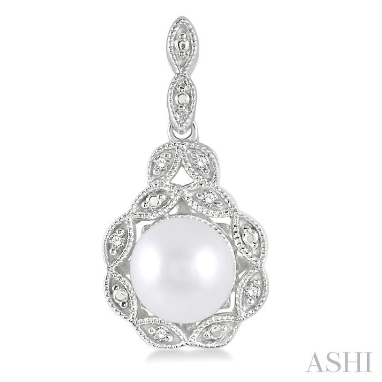 Cherish your sweetheart with this Cultured Pearls and diamond earrings featuring fresh water Cultured Pearls enhanced with the special radiance of 12 single cut diamonds, beautifully prong set in glinting sterling silver. The total diamond weight is 1/20 ctw and each Cultured Pearls measures 6x6 MM.