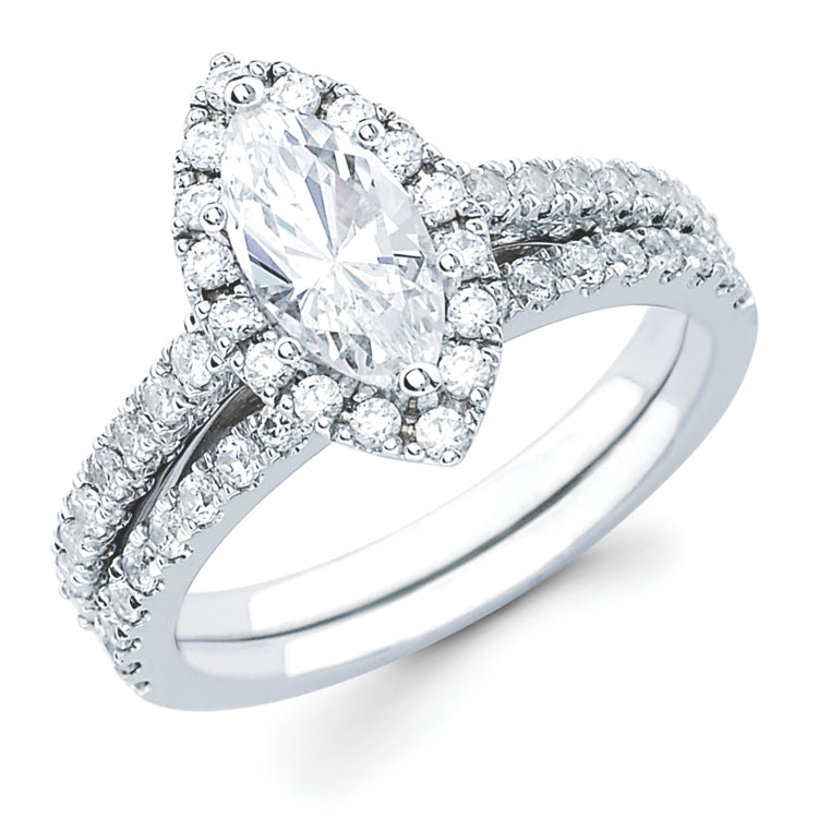 Halo Bridal: 1/2 Ctw. Diamond Halo Semi Mount available for 1 Ct. Marquise Cut Center Diamond in 14K Gold