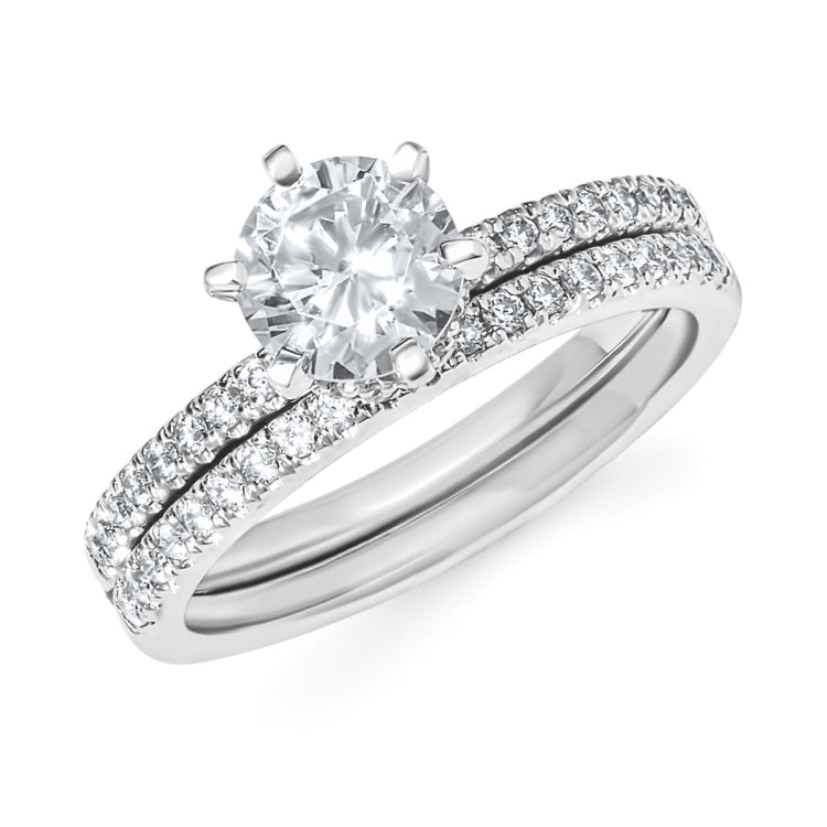 Classic Bridal:   Diamond Semi Mount shown with 1 Ct. Round Center Diamond in 14K Gold for a 6.3mm - 6.8mm Stone