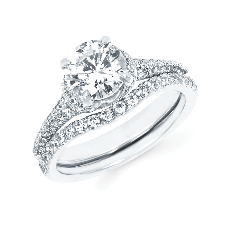 Modern Bridal: 1/3 Ctw. Diamond Semi Mount shown with 1 1/2 Ct. Oval Center Diamond in 14K Gold