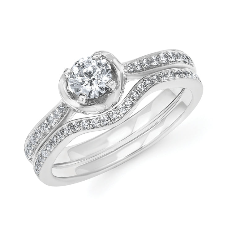 Halo: 1/6 Ctw. Diamond Semi Mount Shown with 1/3 Ct. Round Center Diamond in 14K Gold