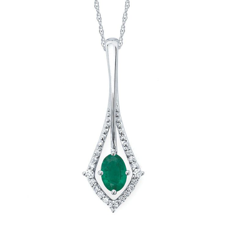 1/2 Tgw. Emerald and Diamond Rain Drop Pendant in 14K Gold (Includes 1/10 Ctw. Diamonds)