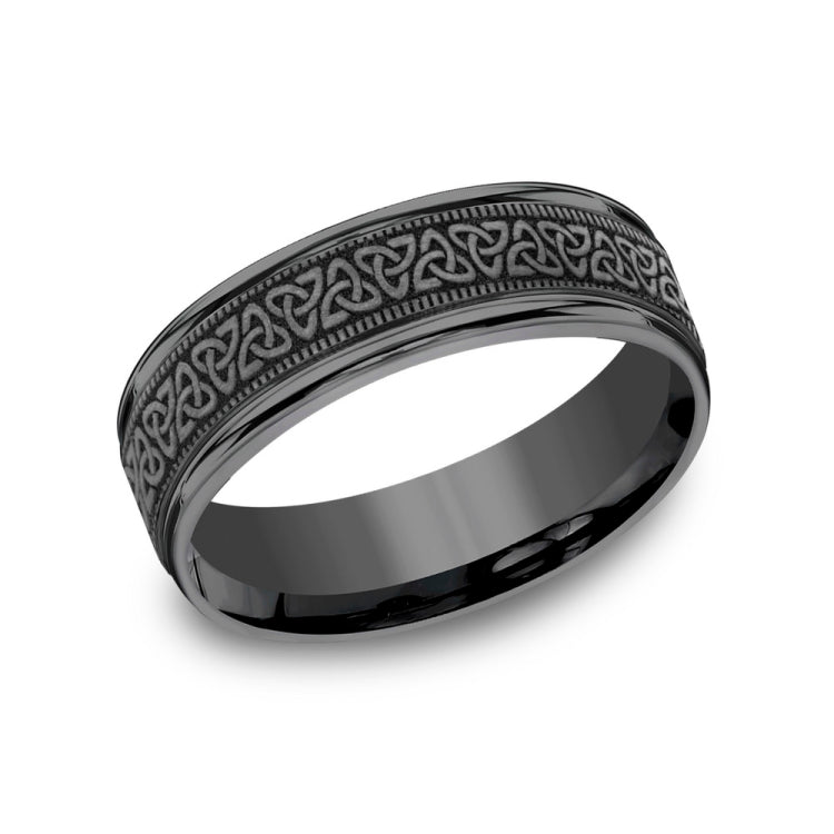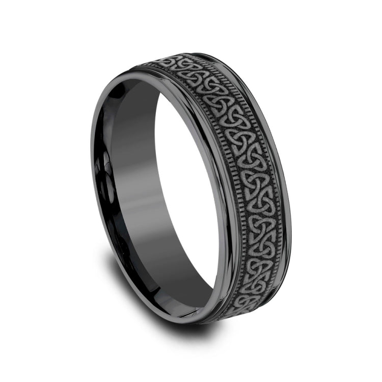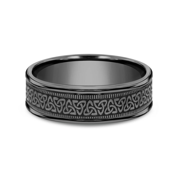 Celtic knot pattern, milgrain detailing, polished round edges