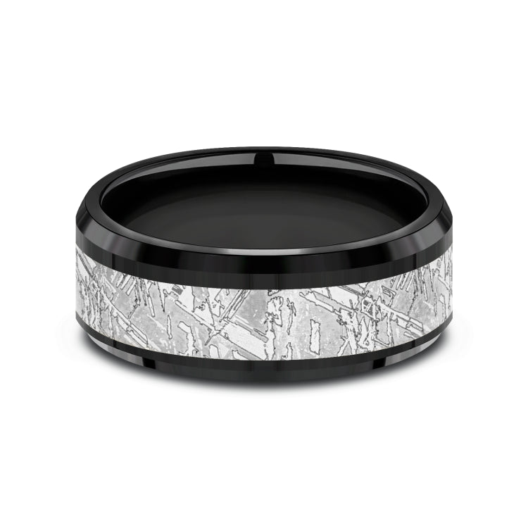 Meteorite patterned center, polished bevel edges