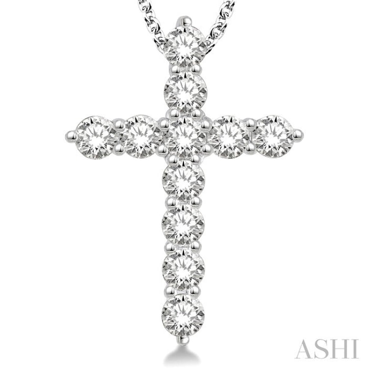 1 1/2 Ctw Round Cut Diamond Cross Pendant in 14K White Gold with Chain